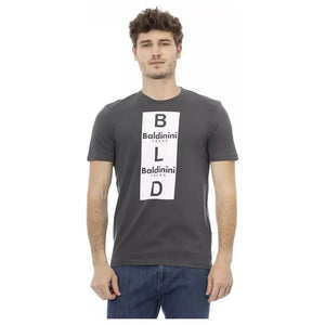 Elevate your casual wardrobe with the Baldinini Trend short sleeve T-shirt. Crafted from premium cotton for ultimate comfort, this tee showcases a sleek gray hue, complemented by a striking front print that commands attention. Perfect for the fashion-forward individual, this piece merges Italian craftsmanship with modern style.