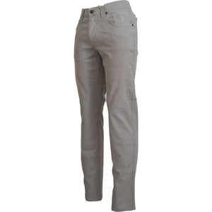 Jeckerson Gray Cotton Tapered Men Casual Pants