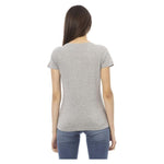 Add an air of effortless sophistication to your wardrobe with this Trussardi Action V-Neck Tee. A perfect blend of comfort and style, this chic short-sleeve t-shirt features an eye-catching front print that encapsulates the bold and trendy essence of the contemporary woman. Crafted from a luxuriously soft mix of cotton and viscose, it promises to elevate your casual look with a touch of Trussardi’s iconic Italian elegance. The subtle gray hue ensures versatility, making it a must-have in any fashion-forward ensemble.