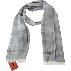 Missoni Gray Floral Wool Unisex Neck Wrap Fringes Scarf