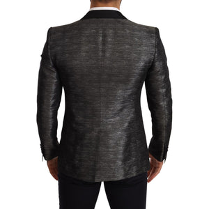 Dolce & Gabbana Gray Metallic Black Slim Tuxedo Blazer