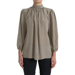 Dolce & Gabbana Gray Mock Neck Long Sleeves Top Blouse