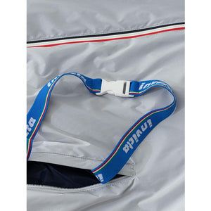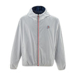 Front closure with tone-on-tone zip, contrasting piping along the zipper, two side welt pockets with zip closures, thin elastic waistband, hood with internal elastic. Internal pocket with closure, contrasting lining with maxi logo, water-repellent technical fabric. Inside the pocket, a branded strap for folding the garment. Composition: 100% Polyamide.