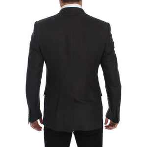 Dolce & Gabbana Gray Slim Fit Linen Blazer Jacket