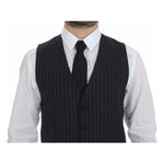 Dolce & Gabbana Gray Striped Wool Logo Vest Gilet Weste