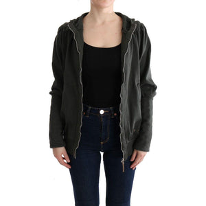 Exte Gray Top Hooded Cotton Zipper Sweater