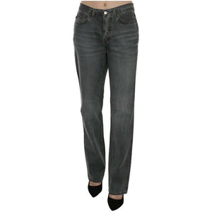 Just Cavalli Gray Washed Mid Waist Straight Denim Pants Jeans