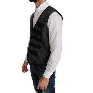 Dolce & Gabbana Gray Wool Patterned Slim Vest