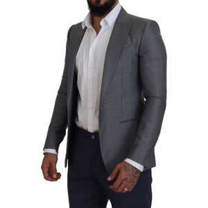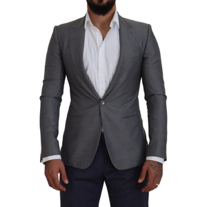 Dolce & Gabbana Gray Wool Silk Slim Fit Jacket Blazer