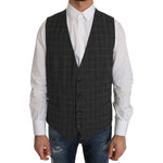 Dolce & Gabbana Gray Wool STAFF Checkered Stretch Vest