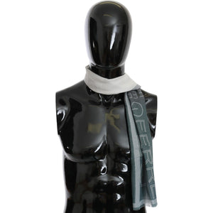 GF Ferre Gray Wool Viscose Foulard Patterned Branded Scarf