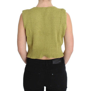 PINK MEMORIES Green Cotton Blend Knitted Sleeveless Sweater