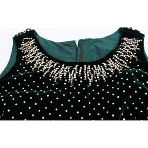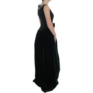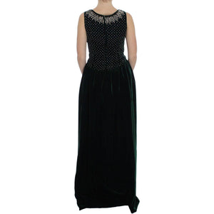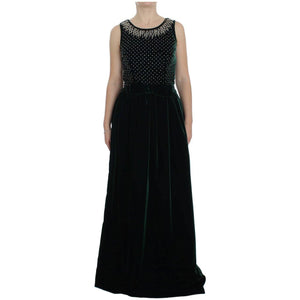 Dolce & Gabbana Green Velvet Crystal Long Maxi Dress