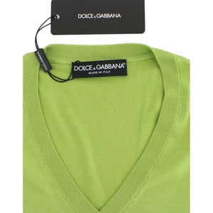 Dolce & Gabbana Green Wool V-neck Pullover Sweater Top