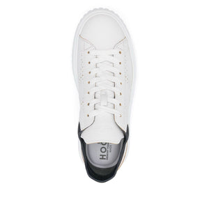 white front lace-up fastening signature perforated H logo logo-debossed tongue branded insole H-Stripes leather sneakers Size and Fit - Heel 1,8 in / 4,5 cm; Platform 1,2 in / 3 cm