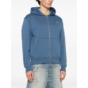 cerulean blue front zip fastening classic hood two front pouch pockets embroidered logo at the sleeve Pop Crest cotton hoodie Size and Fit - This piece fits true to size. We recommend you get your regular size. Model is 1,84m / 6ft 1in wearing size M