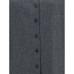 The Auryn Shirt by Khaite combines clean lines with refined materials for effortless elegance. Crafted from dark grey melange wool, it features a front button closure that enhances its understated sophistication. A versatile piece, ideal for elevating both casual and refined outfits.