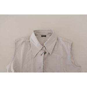 Ferre Light Gray Stripes Cotton Sleeveless Collared Top