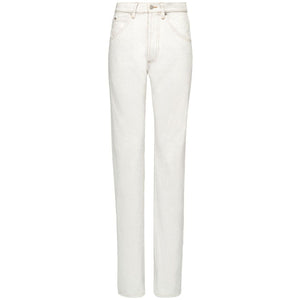 high-waisted straight-leg jeans from Maison Margiela featuring white, cotton, denim, high-waisted, straight leg, belt loops, front button and zip fastening, classic five pockets and straight leg. Skinny denim cotton jeans Size and Fit - This piece fits true to size. We recommend you get your regular size. Model is 1,75m / 5ft 8in wearing size 27 (WAIST CM)