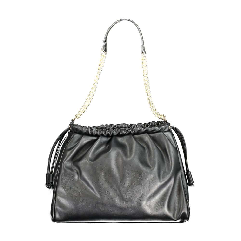 BAG 1 CHAIN SHOULDER HANDLE, ADJUSTABLE AND REMOVABLE SHOULDER STRAP, 1 INTERNAL POCKET, INTERNAL PHONE HOLDER SPACES, ZIP AND DRAWSTRING CLOSURE, APPLICATION, LOGO