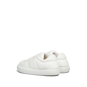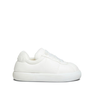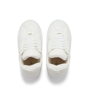 white leather padded design logo-embossed tongue branded heel counter round toe front lace-up fastening branded leather insole flat rubber sole Bigfoot 2.0 leather sneakers Size and Fit - Platform 1,6 in / 4 cm