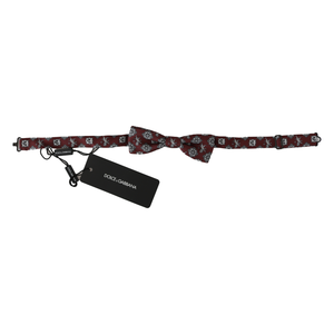 Dolce & Gabbana Men Bordeaux Maroon Lion Silk Adjustable Neck Bow Tie