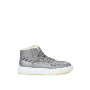 High Sneakers with Inner Fur MM6 Maison Margiela in grey technical fabric, lace-up front with tone-on-tone laces, slightly squared toe with small holes, contrasting white sole with hammered work. Engraved numbers on the back of the sole, iconic contrast stitching on the back of the shoe, fur on the inside of the entire shoe. Sole height: 4 cm-Sku inside:23NOV56