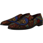 Dolce & Gabbana Multicolor Jacquard Crown Slippers Loafers Shoes
