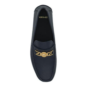 Step into luxury with these impeccable Versace men’s loafers, brand new and accompanied by the original box, tags, and a protective dust bag. Crafted from the finest 100% calf leather in a sophisticated navy blue, these loafers are the epitome of elegance. Adorned with gold-toned metal hardware featuring the iconic Medusa and logo details, these shoes are a true statement of opulence and style.