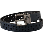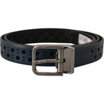Dolce & Gabbana Navy Blue Perforated Leather Skinny Metal Buckle Belt