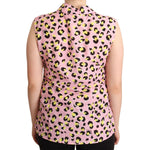 Love Moschino Pink Leopard Print Sleeveless Collared Polo Top