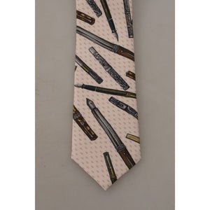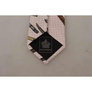 Dolce & Gabbana Pink Pen Dots Print 100% Silk Adjustable Neck Accessory Tie