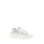 Prada’s America’s Sneakers are a modern and stylish interpretation of the classic sneaker, ideal for those seeking comfort without sacrificing style. Featuring a lace-up closure, they offer an adjustable and secure fit. The slightly elongated toe adds a distinctive touch, while the textured sole ensures a stable and comfortable walk. The leather and fabric panel design creates a dynamic and contemporary visual effect, while the brand’s iconic applique logo on the tongue adds an understated luxury detail.