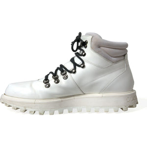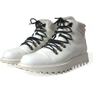 Dolce & Gabbana White Vulcano Trekking Ankle Boots Shoes