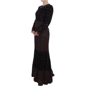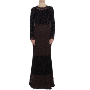 Dolce & Gabbana Purple Floral Lace Ricamo Maxi Dress