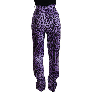 Dolce & Gabbana Purple Leopard Print High Waist Pants