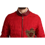Dolce & Gabbana Red Brocade Bomber Gold Crown Logo Coat Jacket