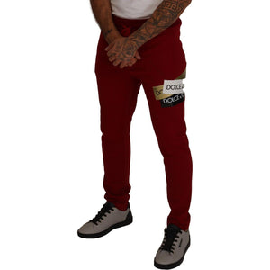 Dolce & Gabbana Red Cotton Logo Patch Sweatpants Jogging Pants