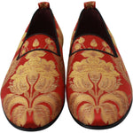 Dolce & Gabbana Red Gold Brocade Slippers Loafers Shoes