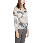 This long-sleeved women’s t-shirt by Rinascimento, model CFC0119862003, is a sophisticated and contemporary style choice. Made from 100% polyester, it offers a lightweight and form-fitting feel, ideal for enhancing the feminine silhouette. The semi-transparent fabric and artistic print add a modern and refined touch, perfect for both casual looks and more elegant occasions. The high neckline brings an extra touch of elegance, while the slightly fitted cut flatters the figure. This versatile garment can be easily paired with tailored trousers or skirts for always fashionable and original outfits.