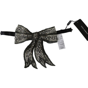 Dolce & Gabbana Silver Crystal Beaded Sequined 100% Silk Catwalk Necklace Bowtie