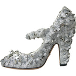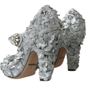 Dolce & Gabbana Silver Floral Crystal Mary Jane Pumps Shoes