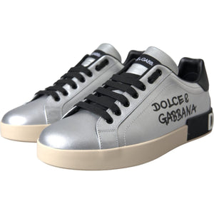 Dolce & Gabbana Silver Portofino Calf Leather Sneakers Men Shoes