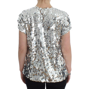 Dolce & Gabbana Silver Sequined Crewneck Blouse T-shirt Top