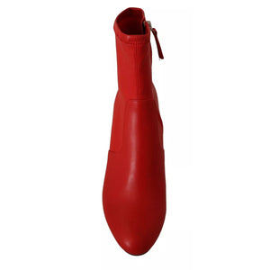 Steve Madden Red Leather Block Heels Ankle Boots Shoes