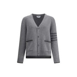 Thom Browne’s merino wool Cardigan is a classic revisited with iconic details and sartorial care. It features a V-neck, front button closure and two patch pockets with contrasting piping. The hem and cuffs are ribbed, while contrasting bands on the left sleeve and discreet side slits add a distinctive touch to the essential design.