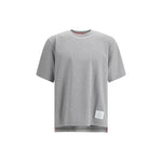 Thom Browne’s oversized T-Shirt combines an essential aesthetic with distinctive details. Made with a ribbed crew neck, it features two side slits that add comfort and movement. An iconic patch stands out on the front, while colorful bands on the back lend an unmistakable touch, discreetly signing off the brand’s style.