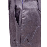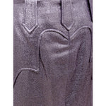 Tom Ford Purple Eco-Leather Lurex Skirt. Side opening with hidden zip, ‘Country’ applique details, belt loops, medium length pencil line, wide front slit, internal lining.