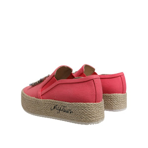Twinset Pink Canvas Crystal Embellished Slip On Shoes