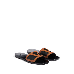 black/chestnut brown goatskin grained texture slip-on style VLogo Signature square open toe branded footbed flat rubber sole Viva Superstar leather slides Size and Fit - Heel 0,2 in / 0,5 cm